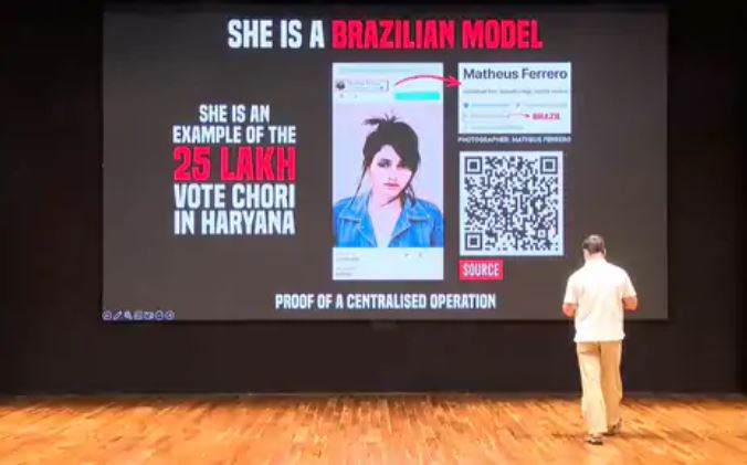 दरअसल, 5 नवंबर को राहुल गांधी ने दिल्ली में प्रेस कॉन्फ्रेंस कर दावा किया था कि हरियाणा विधानसभा चुनाव 2024 के दौरान करीब 25 लाख वोट चोरी हुए। उन्होंने एक महिला की तस्वीर दिखाते हुए कहा था कि हरियाणा की वोटर लिस्ट में ब्राजीलियन मॉडल की फोटो लगाकर वोट डाले गए। राहुल ने आरोप लगाया कि इस महिला की तस्वीर से 10 अलग-अलग बूथों पर कई नामों से वोट डाले गए। हालांकि, उन्होंने मॉडल का नाम नहीं बताया।