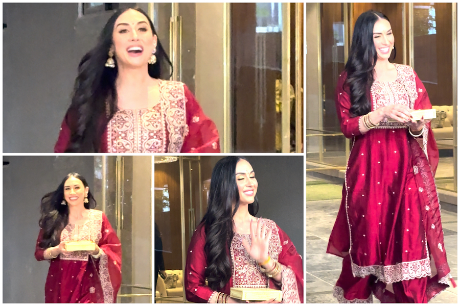 मुंबई में अपने नए घर में पारंपरिक ग्रह-प्रवेश पूजा के बाद लॉरेन गॉटलिब ने अपने फैंस और मीडिया के सामने मुस्कुराते हुए यह खास मौका मनाया।गहरे लाल मखमली सिल्क सूट में वह बेहद स्टाइलिश और आत्मविश्वासी नजर आ रही थीं। मिठाइयों के साथ आने वालों का स्वागत करते हुए उन्होंनेकहा, “आने के लिए धन्यवाद, मुझे फिर से घर जैसा महसूस हो रहा है और मेरे पास आपके लिए मिठाइयाँ हैं।”