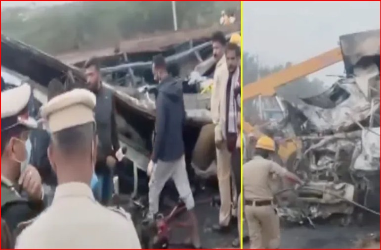 कर्नाटक में भीषण हादसा: ट्रक से टक्कर के बाद स्लीपर बस बनी आग का गोला, 9 लोगों की जिंदा जलकर मौत