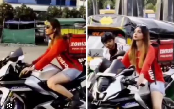 सोशल मीडिया प्लेटफॉर्म पर एक वीडियो तेजी से वायरल हो रहा है. वीडियो में एक लड़की शॉर्ट्स पहनकर बाइक चला रही है, लेकिन उसकी पीठ पर फूड डिलीवरी कंपनी जोमैटो का बैग है. उसे देखकर सोशल मीडिया पर यह चर्चा होने लगी कि जोमैटो ने इतनी खूबसूरत डिलीवरी गर्ल को क्यों हायर किया। वह जिस इलाके से बाइक लेकर गुजर रही होती हैं, लोगों की नजरें उन पर ही रुक जाती हैं. वह एक ट्रैफिक प्वाइंट पर रुकती है, जहां हर कोई उसे देखने लगता है और उससे सवाल पूछने लगता है।